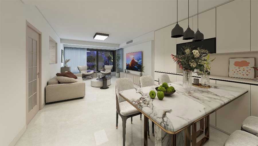 20000m²實(shí)景體驗(yàn)館:涵蓋多樣風(fēng)格實(shí)景樣板間、實(shí)景施工樣板間、主輔材區(qū)、定制家具、成品家具五大板塊,提供一站式家裝場(chǎng)景化體驗(yàn)。