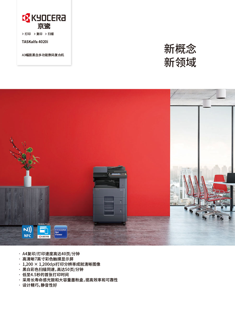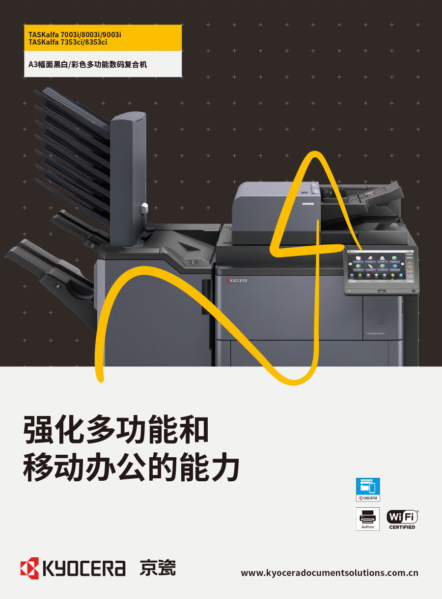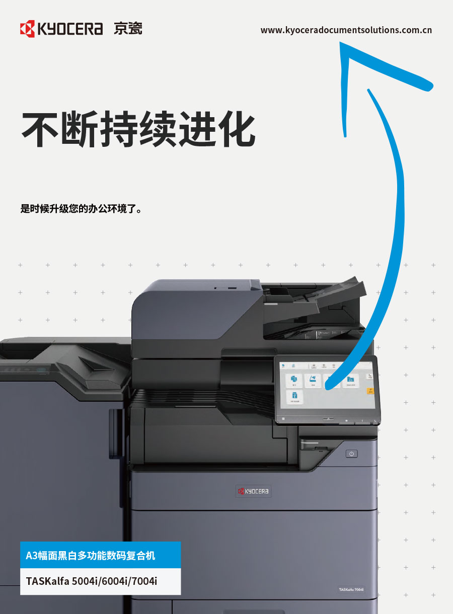 京瓷辦公信息系統(tǒng)(中國)有限公司主要負責(zé)彩色和黑白數(shù)碼復(fù)合機、彩色和黑白數(shù)碼激光打印機、辦公解決方案等系列辦公自動化設(shè)備的銷售。我們將一如既往延續(xù)ECOSYS理念,始終站在時代前沿,以科技服務(wù)社會,堅持開發(fā)更能滿足時代需求、更為綠色的新銳產(chǎn)品,使用戶都能夠從中獲得更大的利益。