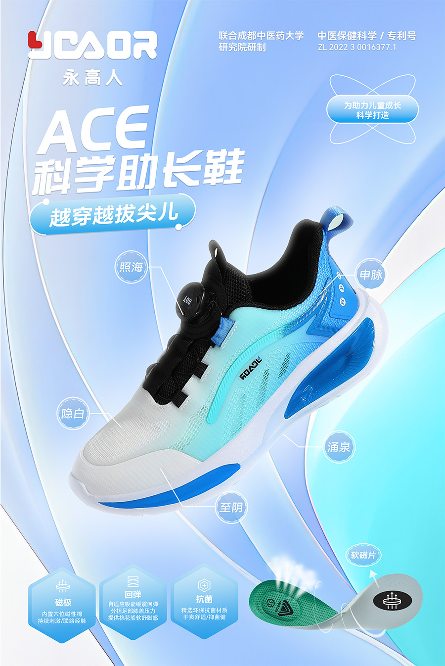 2021年,永高人順應(yīng)國(guó)內(nèi)消費(fèi)升級(jí),與國(guó)際超級(jí)IP海綿寶寶跨界合作,繼續(xù)引領(lǐng)兒童鞋服時(shí)尚前沿趨勢(shì)。此外,還攜手成都中醫(yī)藥大學(xué)專家團(tuán)隊(duì)聯(lián)合研制“永高人科技助長(zhǎng)保健鞋”系列產(chǎn)品,通過(guò)“磁刺激”對(duì)足部穴位按摩,聯(lián)絡(luò)身體經(jīng)脈,從而調(diào)節(jié)臟腑器官的機(jī)能活動(dòng),助力兒童身高成長(zhǎng)發(fā)育。
