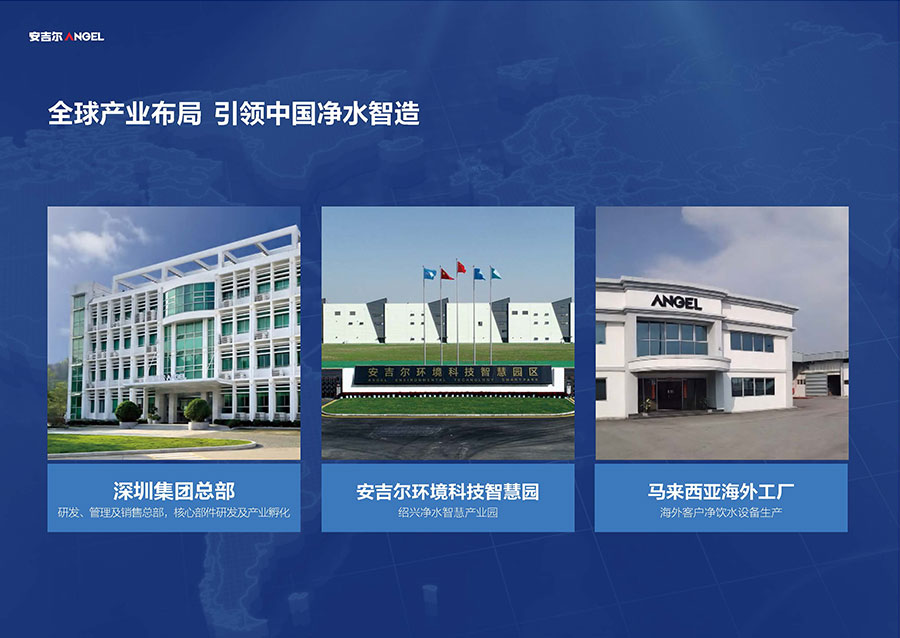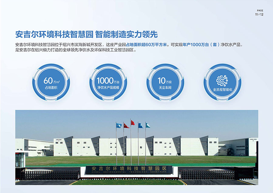安吉爾布局三大生產(chǎn)基地,其中安吉爾環(huán)境科技智慧園占地面積逾60萬平方米,具備年產(chǎn)1000萬臺(tái)(套)凈飲水產(chǎn)品的制造能力。生產(chǎn)體系已獲得中國(guó)CQC、美國(guó)UL、加拿大CSA等全球八項(xiàng)權(quán)威認(rèn)證機(jī)構(gòu)認(rèn)可。
