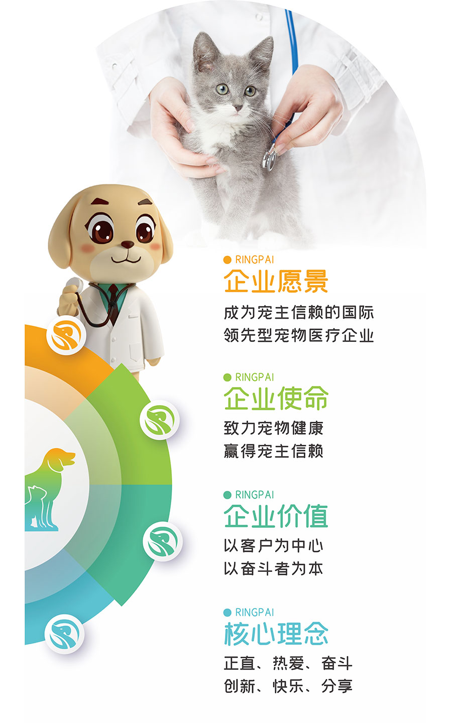 目前瑞派寵物醫(yī)院所轄門店超600家,覆蓋全國(guó)27個(gè)省,70余座城市,年接診量超300萬例,員工6000余名,其中博士9人,碩士126人,醫(yī)療專業(yè)人員3000余人,執(zhí)業(yè)獸醫(yī)師1800余人。瑞派寵物醫(yī)院與浙江大學(xué)、中國(guó)農(nóng)業(yè)大學(xué)等全國(guó)100多所院校開展產(chǎn)學(xué)研合作,與碩騰、勃林格、皇家、瑞普生物等國(guó)內(nèi)外產(chǎn)業(yè)領(lǐng)軍企業(yè)建立戰(zhàn)略合作關(guān)系,擁有國(guó)內(nèi)頂級(jí)專家領(lǐng)銜的專家團(tuán)隊(duì)。瑞派秉持“以客戶為中心,堅(jiān)持以?shī)^斗者為本”的核心價(jià)值觀,致力于發(fā)展好每一位員工!發(fā)展好每一家醫(yī)院!堅(jiān)持服務(wù)好每一只寵物和每一位寵主!