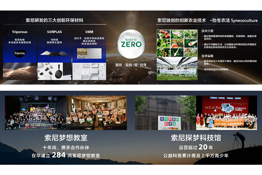 在發(fā)展各項(xiàng)業(yè)務(wù)的同時(shí),索尼矢志不渝履行對(duì)地球的“責(zé)任”,并通過(guò)技術(shù)和業(yè)務(wù)為地球做“貢獻(xiàn)”。在“走向零負(fù)荷”的環(huán)境目標(biāo)指導(dǎo)下,在中國(guó),索尼已從2020-2022財(cái)年連續(xù)實(shí)現(xiàn)100%可再生能源用電,并將多樣創(chuàng)新的環(huán)保技術(shù)成果引入中國(guó):包括將多樣植物高密度混種以回歸自然生態(tài)的“協(xié)生農(nóng)法”,索尼獨(dú)自開(kāi)發(fā)的三大創(chuàng)新環(huán)保材料SORPLARSTM,TriporousTM,OBM等。