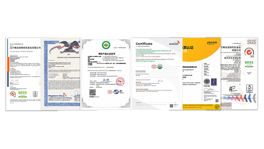 海辰有機(jī)擁有多項(xiàng)權(quán)威體系認(rèn)證,如中國國標(biāo)有機(jī)寵物食品認(rèn)證、美國NOP有機(jī)寵物食品認(rèn)證、美國FDA認(rèn)證、BRC全球食品標(biāo)準(zhǔn)安全認(rèn)證、ISO9001質(zhì)量管理體系認(rèn)證、ISO24001環(huán)境管理體系認(rèn)證、ISO45001職業(yè)健康安全管理體系認(rèn)證和ISO22000食品安全管理體系認(rèn)證等。同時(shí),該公司還榮獲了遼寧省省級企業(yè)技術(shù)中心、遼寧省高新技術(shù)企業(yè)、遼寧省科技型中小企業(yè)、遼寧省創(chuàng)新型中小企業(yè)、遼寧省專精特新中小企業(yè)、遼寧省瞪羚企業(yè)、遼寧省省級數(shù)字化車間、遼寧省5G全連接工廠試點(diǎn)示范項(xiàng)目以及2023年度省級綠色工廠等多個(gè)榮譽(yù)稱號。