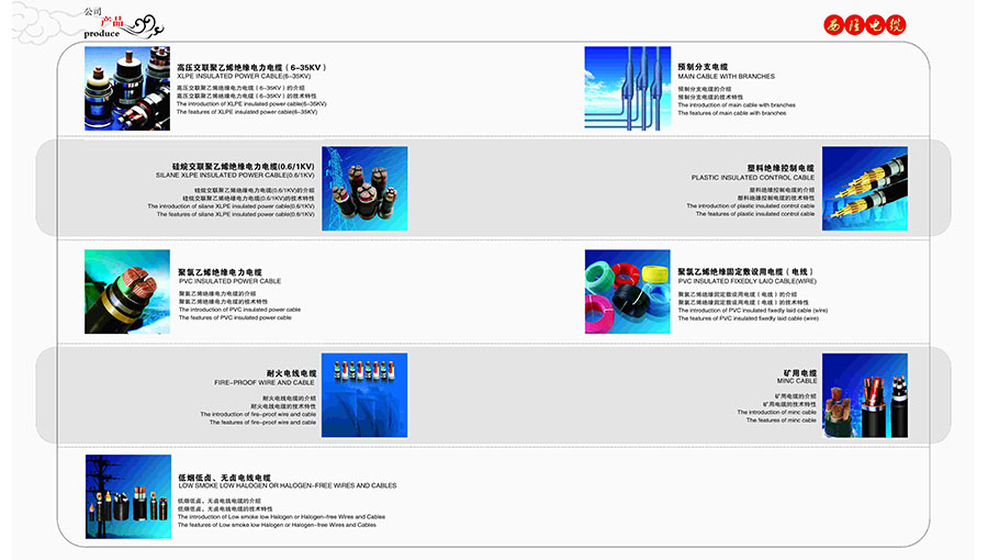 主要產品:“西隆線纜”品牌高低壓電力電纜、架空絕緣導線、架空裸導線、民用電線、戶外耐候線、控制電纜、橡套電纜、礦用阻燃電纜、硅橡膠電纜、計算機電纜、光伏專用電纜、鋁合金電力電纜、氟塑料電纜等產品