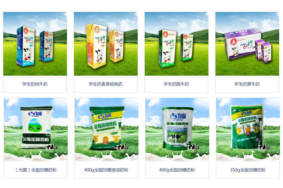 主要產(chǎn)品:古城牌液體乳、乳粉、飲料
